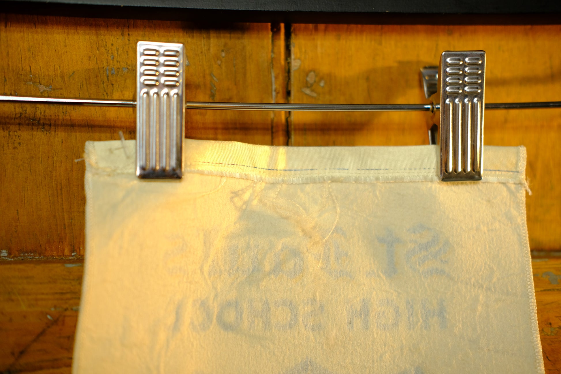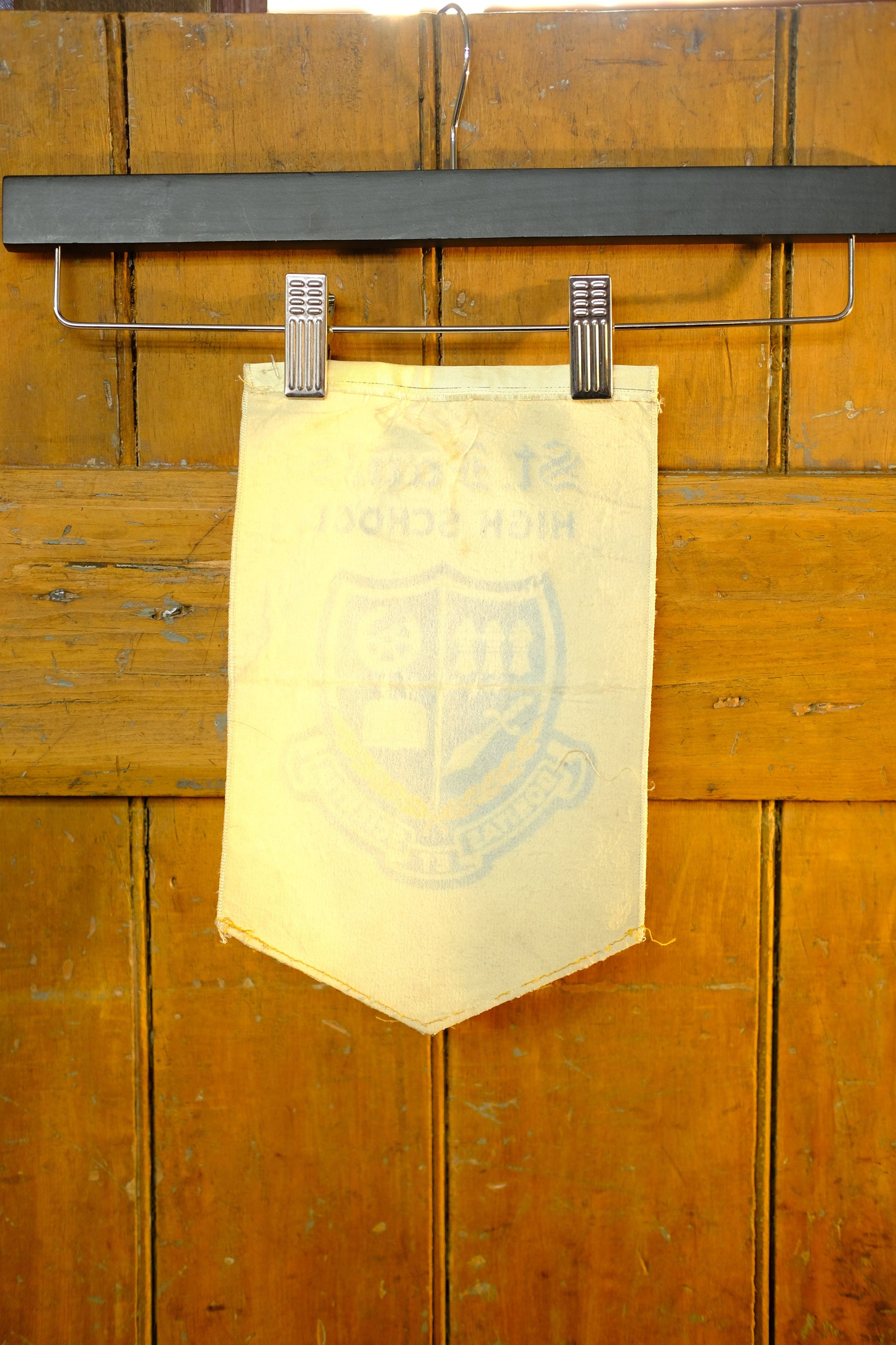 Banner in good vintage condition. Of note, there is some fraying of the stitching on the front and back. Please refer to photos. View last photo for measurement. Additional photos available upon request.