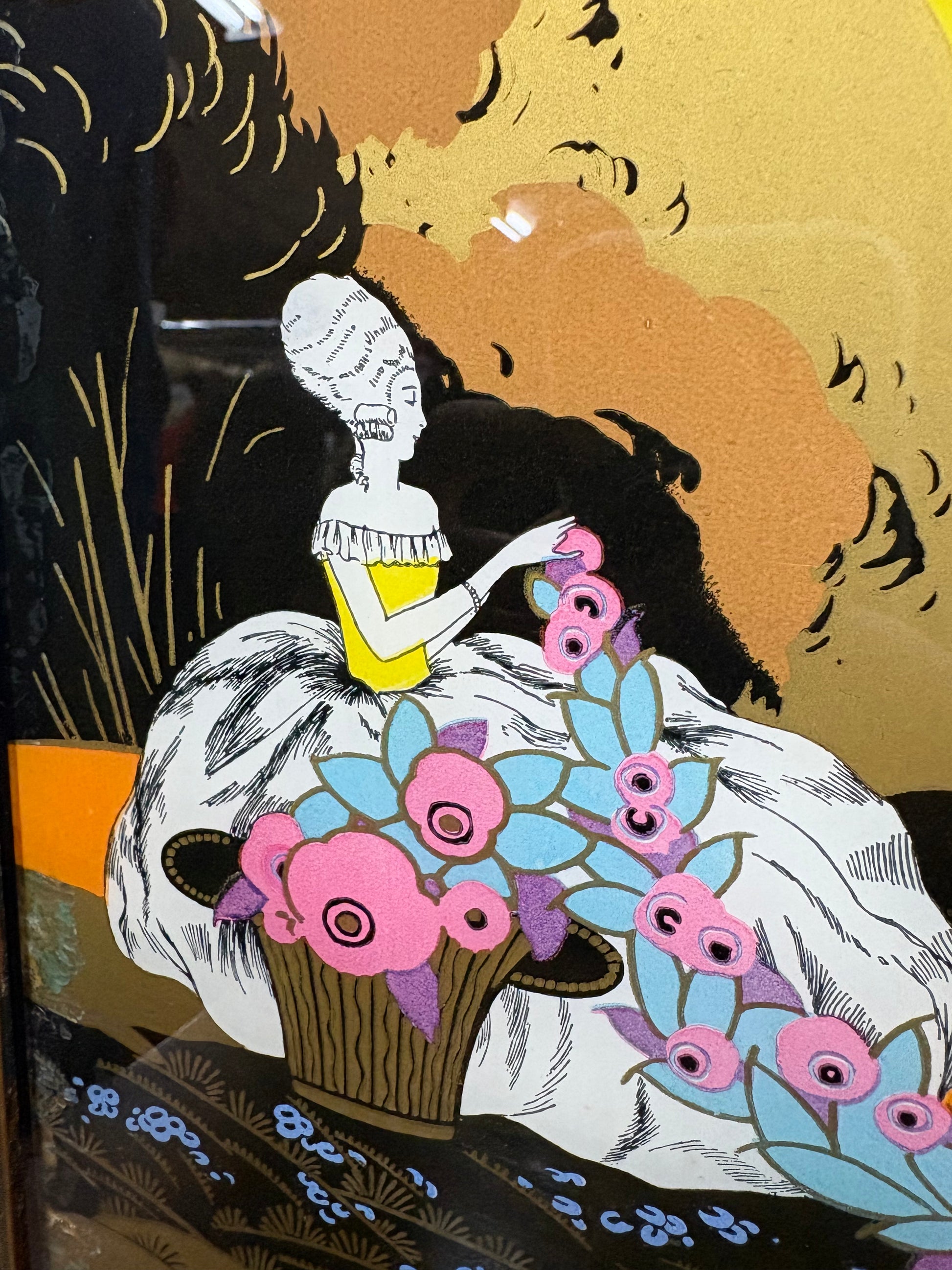 Vintage Eglomise Painting Under Glass Art